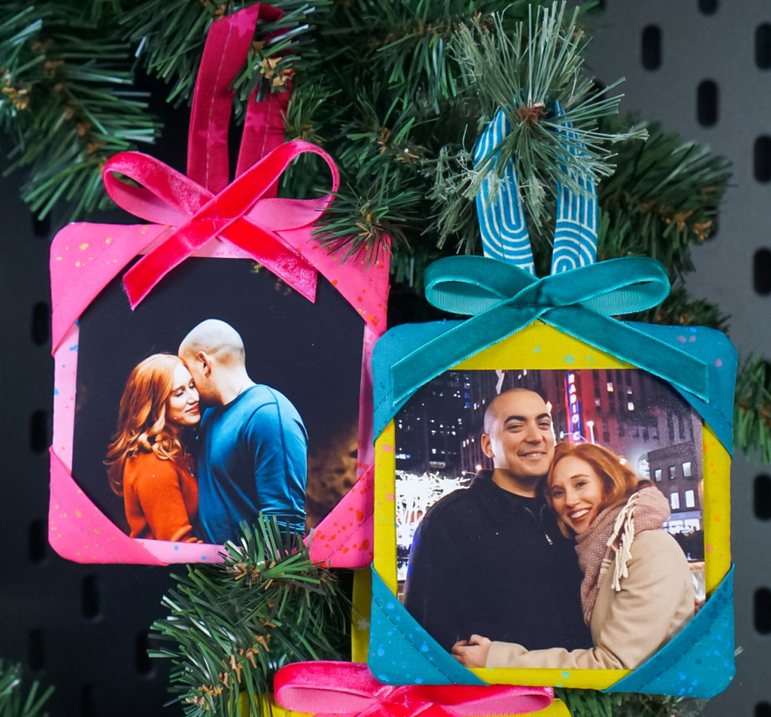 You might want to bring your photos or greeting card to finish off your ornament too. Make sure images will fit into the 4x4” finished frame.
