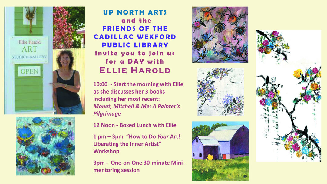 Up North Arts and the Friends of the Cadillac Wexford Public Library invite you to join us for a DAY with Ellie Harold.