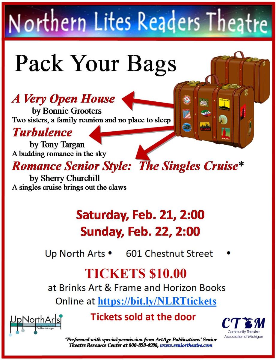 Northern Lights Readers Theatre Presents Pack Your Bags Performance dates: 2/21 @ 2pm and 2/22 @ 2pm
