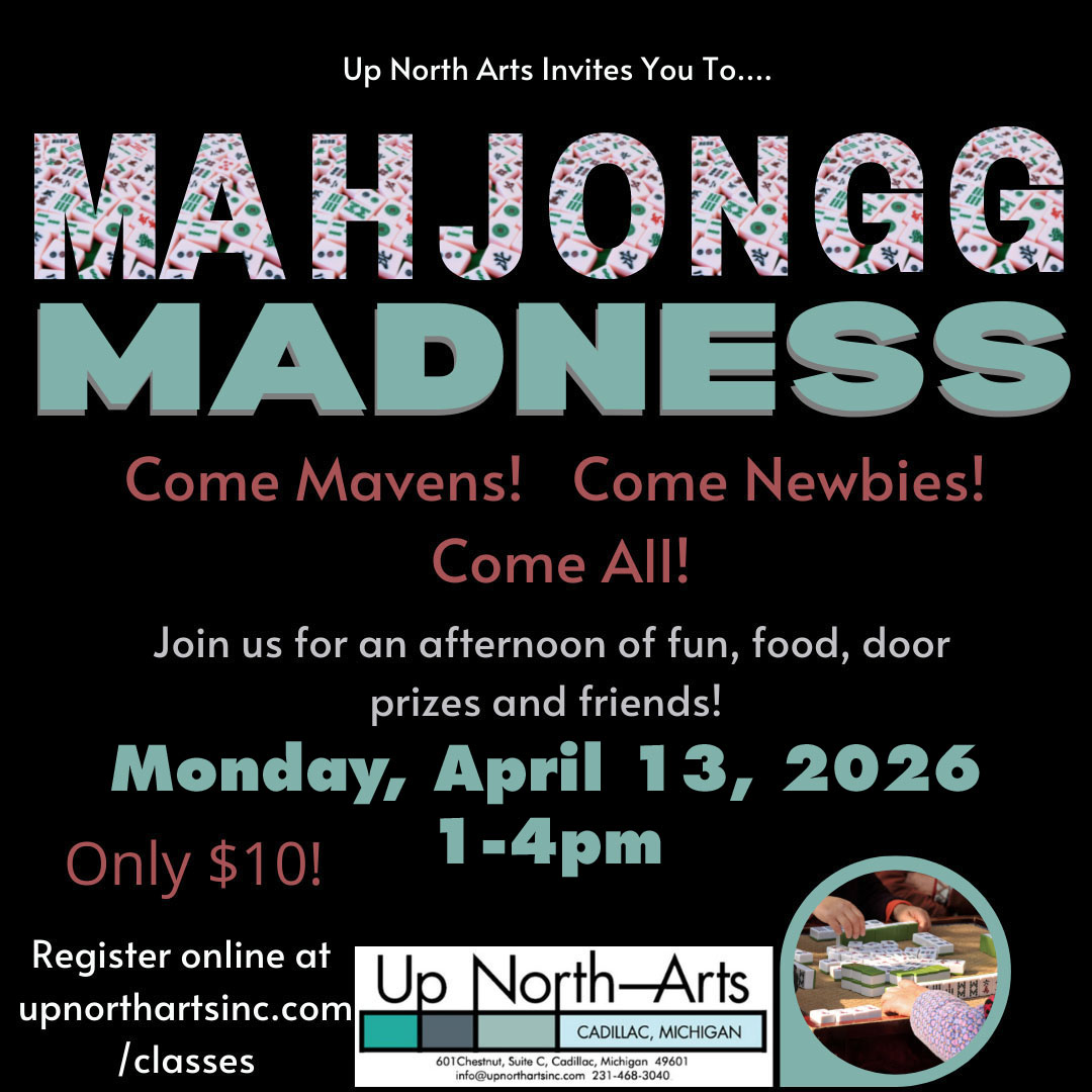 Up North Arts welcomes all Mahjongg players, Newbies to Mavens, for an afternoon of fun and fellowship! Players will need to have their 2026 National Mahjongg League card, and bring a Mahjongg set, if available. Enjoy an afternoon with fellow Mahjongg enthusiasts!