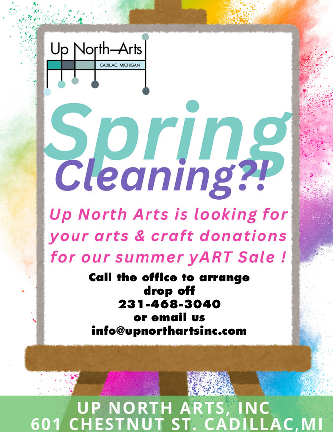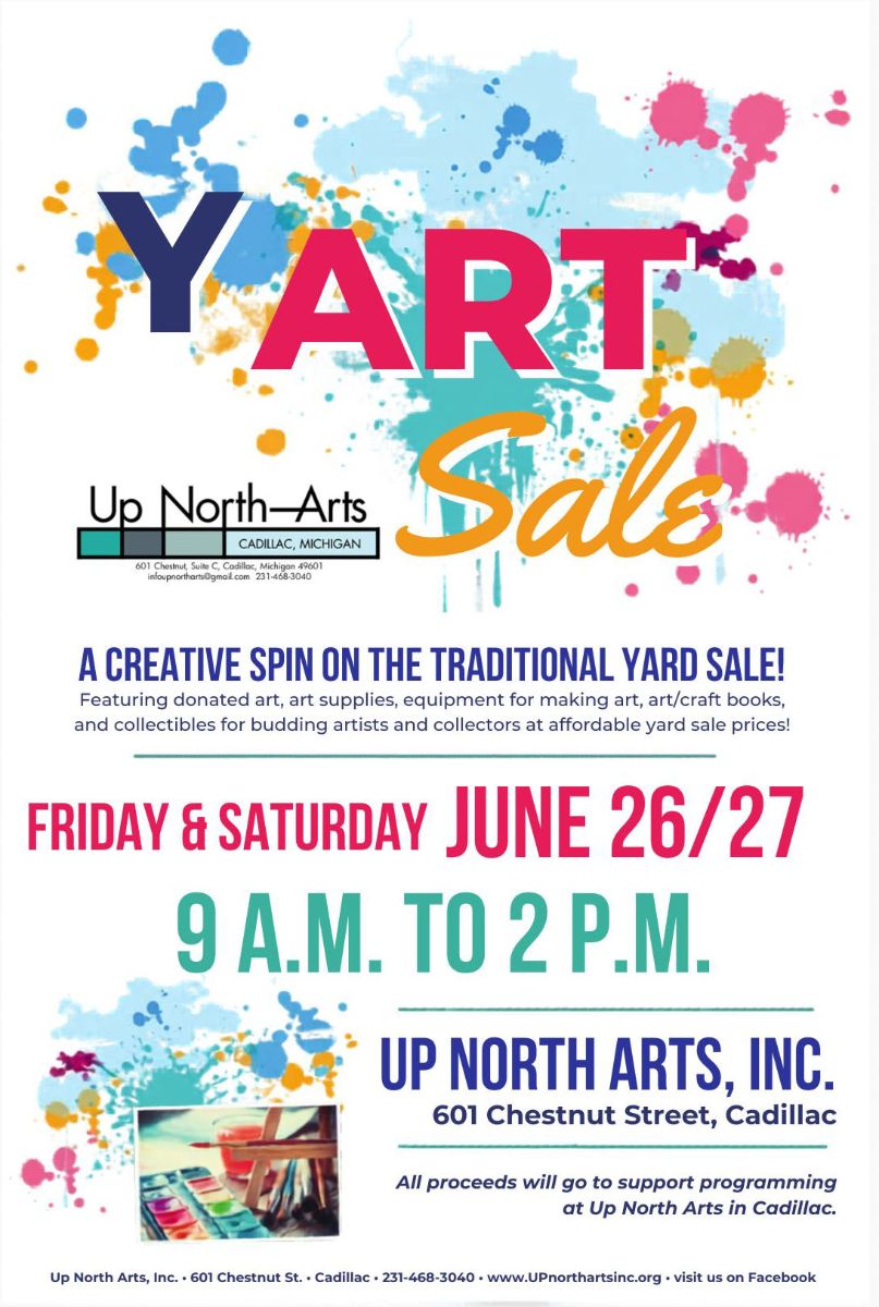 We're having a yard sale of art supplies, fine craft supplies, and finished pieces. Help support future programming at Up North Arts by either donating items for us to sell, visiting the day of the sale, or volunteering to help out.