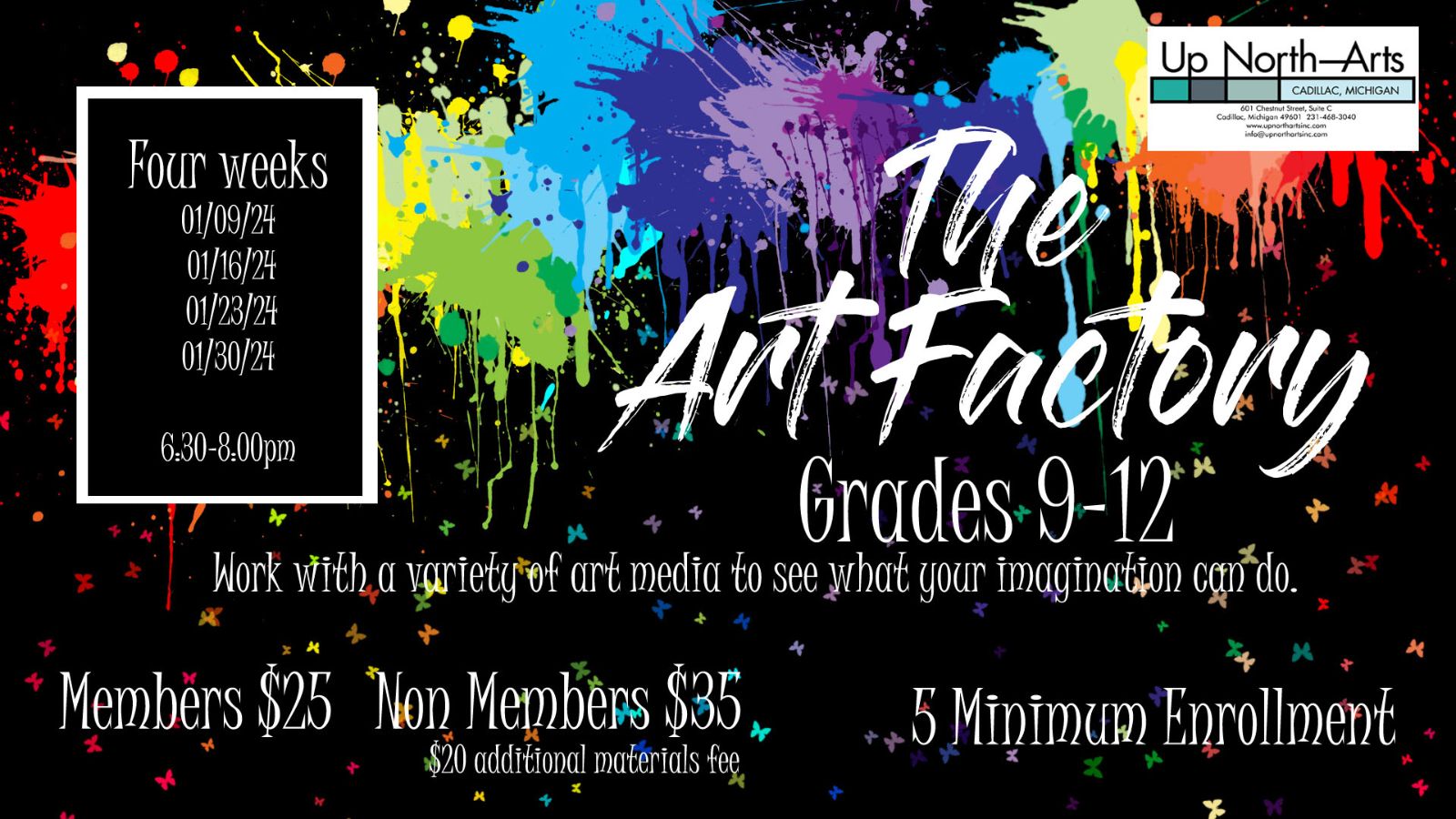 The Art Factory Winter 2024- 01/9, 16, 23 & 30 - 6:30-8:00pm Grades 9-12 - REGISTER HERE